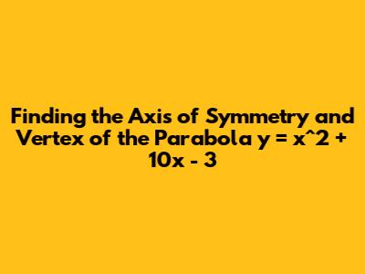 Therefore, the axis of symmetry for the parabola y = x² + 10x - 3 is the vertical line x = -5. Think of this line as a mirror placed right at x = -5 on the graph; the parabola will look exactly the same on both sides of this line. This axis not only gives us a sense of the parabola’s symmetry but also provides the x-coordinate of the vertex, which is our next target.