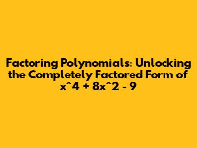 Have you ever stared at a polynomial and felt like you were looking at a mathematical puzzle? Polynomials, especially those with higher degrees, can seem intimidating at first glance. But don't worry! With a few key strategies, you can unlock their secrets and find their completely factored form. In this comprehensive guide, we'll break down the process of factoring the polynomial x^4 + 8x^2 - 9 step-by-step, making it clear and easy to understand. Whether you're a student tackling algebra or just someone who loves a good mathematical challenge, this article is for you.
