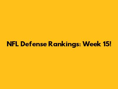 NFL Defense Rankings: Week 15!