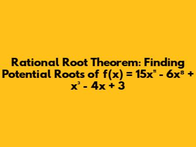 Have you ever wondered how to find the roots of a polynomial equation? The Rational Root Theorem is a powerful tool that helps us identify potential rational roots. In this article, we'll explore how to apply this theorem to a specific polynomial function, f(x) = 15x¹¹ - 6x⁸ + x³ - 4x + 3, and determine its possible rational roots. Let’s dive in and break down this mathematical concept step by step, making it easy to understand and apply.