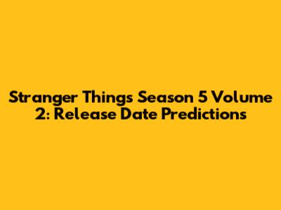 Stranger Things Season 5 Vol 2: Release Date Predictions