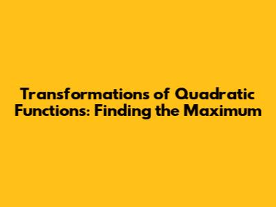 Transformations Of Quadratic Functions: Finding The Maximum