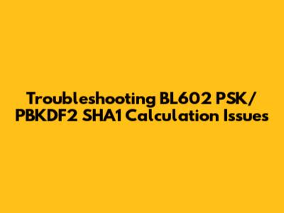 In conclusion, troubleshooting PSK/PBKDF2_SHA1 calculation issues on the BL602 requires a methodical approach, combining debugging, workarounds, and a deep understanding of security implications. The user's experience highlights the importance of community collaboration and the balance between immediate fixes and long-term security. While the provided workaround offers a temporary solution, a comprehensive approach involving root cause analysis, security audits, and adherence to best practices is essential for robust and secure BL602-based applications. Remember to always prioritize security while implementing workarounds and strive for long-term solutions that address the root cause of the problem.